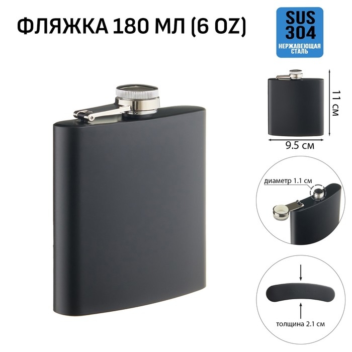 Фляжка для алкоголя, нержавеющая сталь, подарочная, армейская, 180 мл, 6 oz