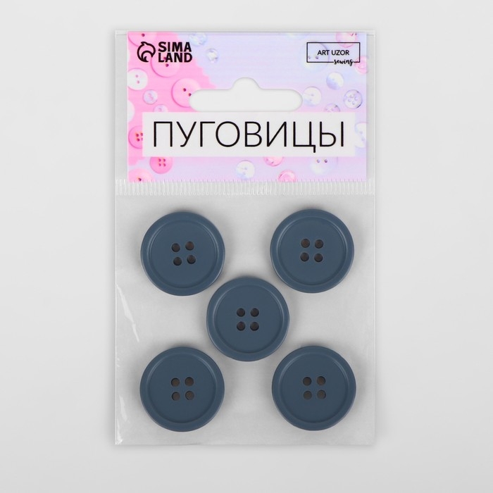 Набор пуговиц, 4 прокола, d = 23 мм, 5 шт, цвет серый матовый