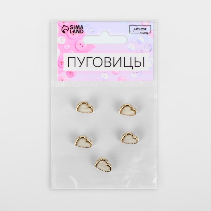 Набор пуговиц на ножке «Сердце», 13 × 13 мм, 5 шт, цвет белый/золотой