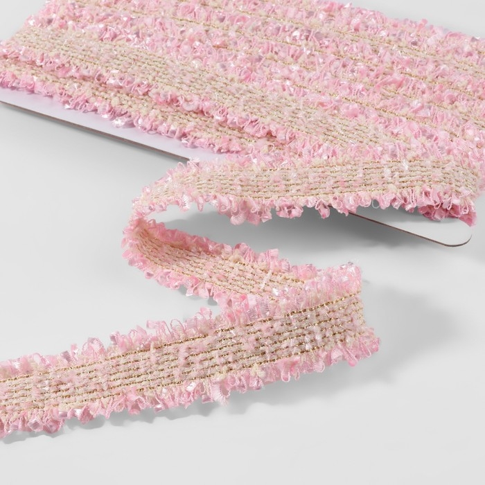 Тесьма декоративная «Твидовая», двусторонняя, 30 мм, 5 ± 0,5 м, цвет розовый