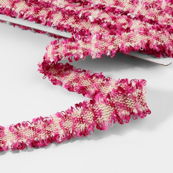 Тесьма декоративная «Твидовая», двусторонняя, 30 мм, 5 ± 0,5 м, цвет фуксия