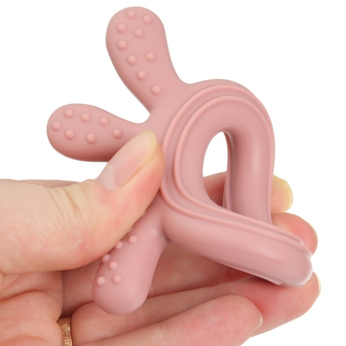 Прорезыватель снимает неприятные ощущения у малыша в период появления первых зубов. Также изделие подготовит ребёнка к процессу жевания, поспособствует формированию правильного прикуса и развитию мелкой моторики рук.