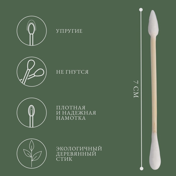 Ватные палочки на деревянной основе, биоразлагаемые, 7 см, 200 шт, в пластиковом органайзере
