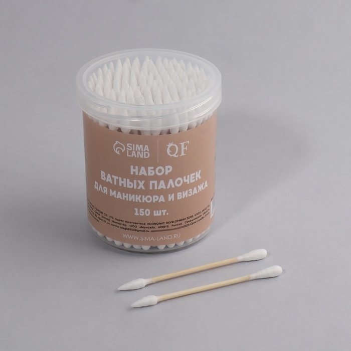 Ватные палочки на деревянной основе, биоразлагаемые, 7 см, 150 шт, в пластиковом органайзере