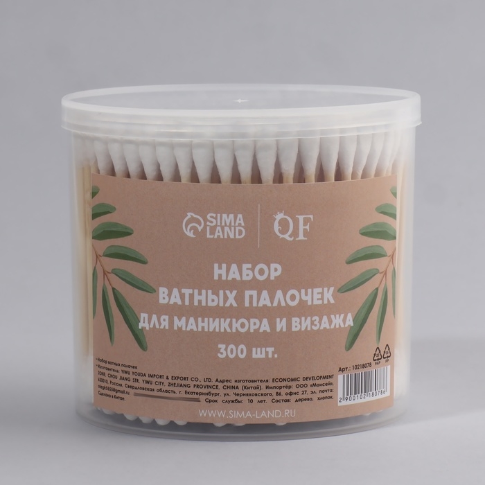 Ватные палочки на деревянной основе, биоразлагаемые, 7 см, 300 шт, в пластиковом органайзере