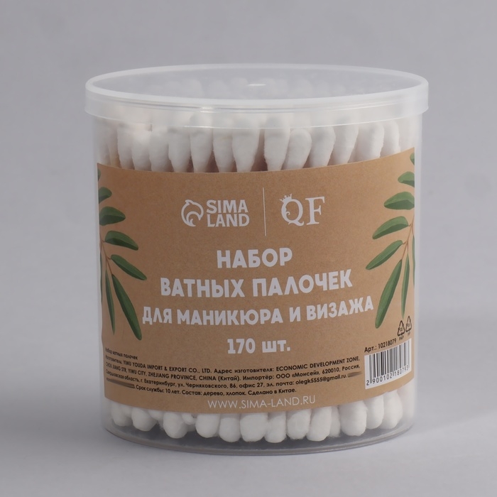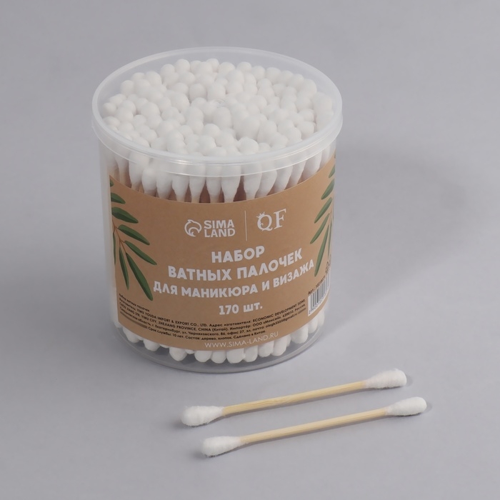 Ватные палочки на деревянной основе, биоразлагаемые, 7 см, 170 шт, в пластиковом органайзере