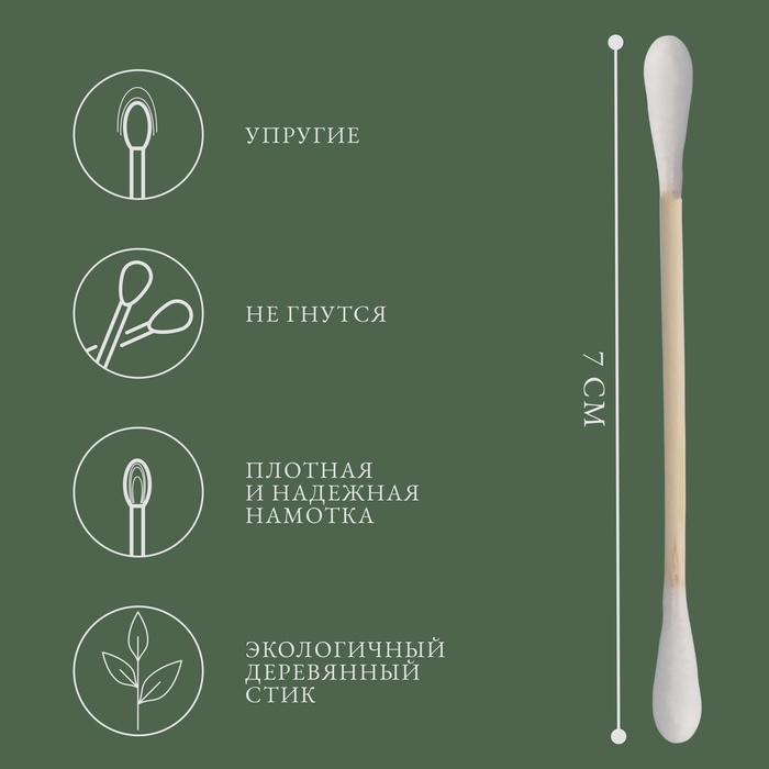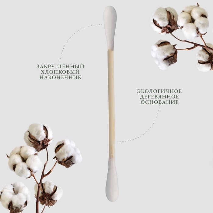 Ватные палочки на деревянной основе, биоразлагаемые, 7 см, 200 шт, в пластиковом органайзере