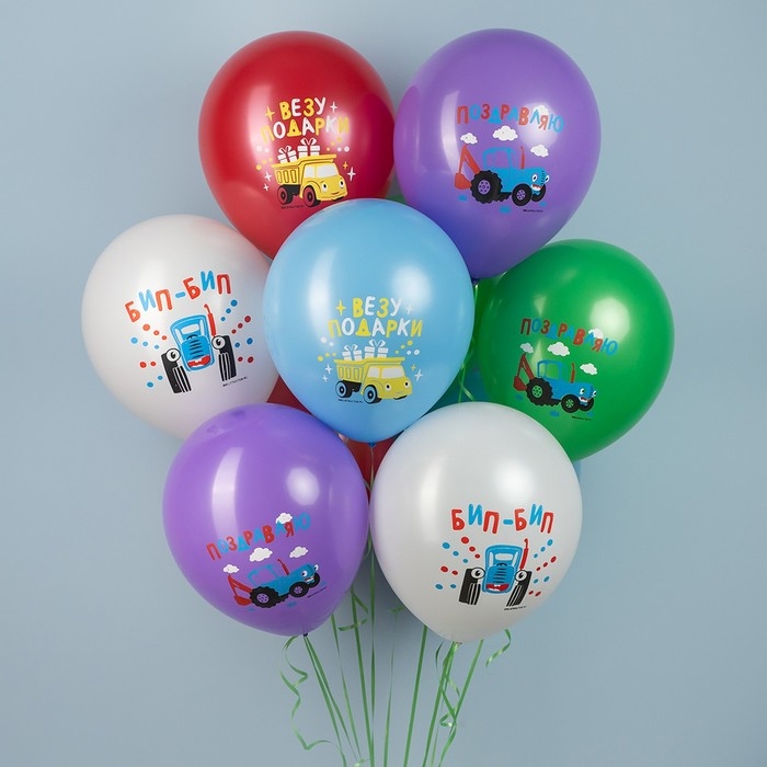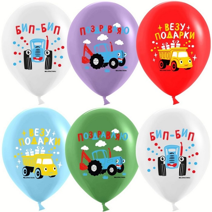 Шар латексный 12" «Синий Трактор», 1 ст., набор 10 шт., МИКС