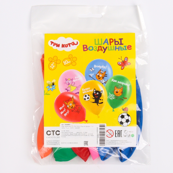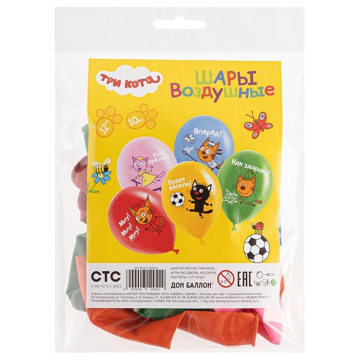 Шар латексный 12" «Три Кота. Игры во дворе», 1 ст., набор 10 шт., МИКС