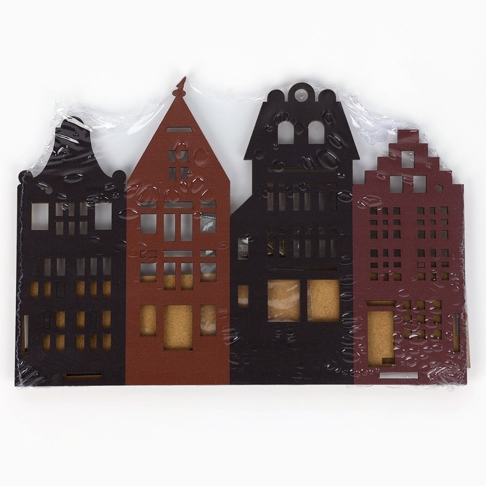 Ключница настенная с полкой с полкой и карманом, город, 23 х 16,1 см.