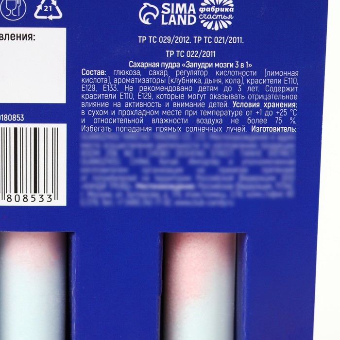 Состав: глюкоза, сахар, регулятор кислотности (лимонная кислота) , ароматизаторы (клубника, дыня, кола), красители Е110, Е129, Е133.