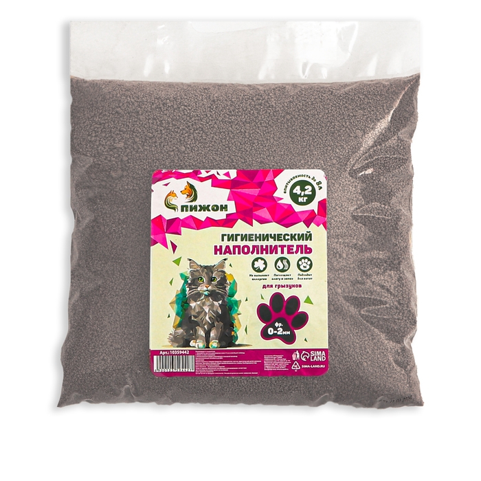 Наполнитель гигиенический "Пижон" , для грызунов , фр 0-2 мм 4,2 кг впитываемость до 8 л