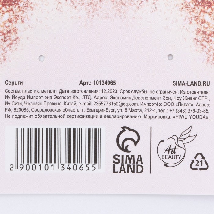 Серьги «You are beautiful», 2.5 х 4 см