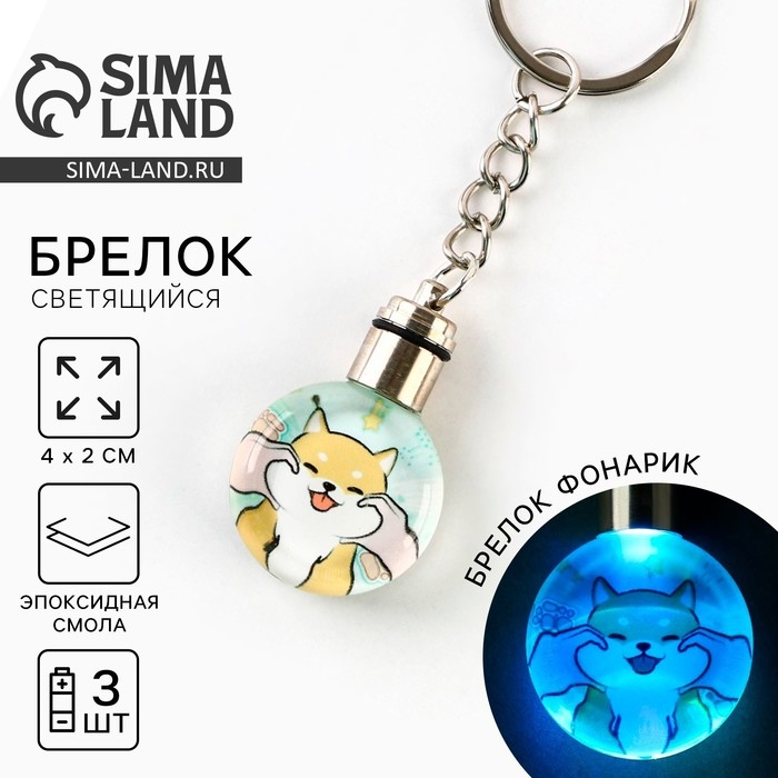 Брелок для ключей с фонариком «Сиба-ину», 4 х 2 см