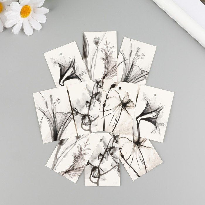 Бирка картон "Черная акварель" набор 10 шт (5 видов) 4х6 см