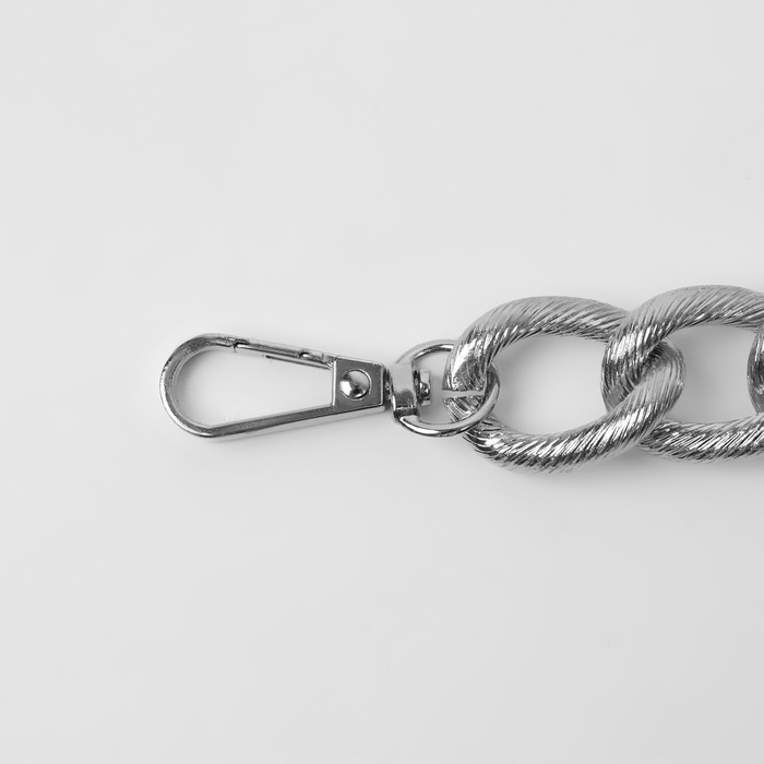 Цепочка для сумки, с карабинами, металлическая, ребристая, 27 × 20 мм, 60 см, цвет серебряный