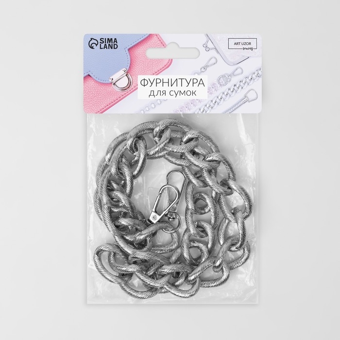 Цепочка для сумки, с карабинами, 14 × 18 мм, 60 см, цвет серебряный