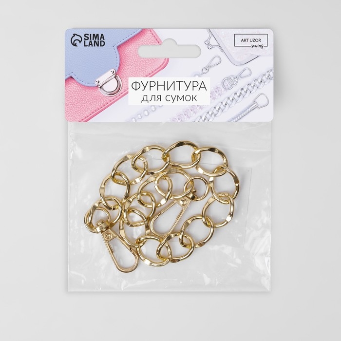 Цепочка для сумки, с карабинами, 14 × 10 мм, 60 см, цвет золотой