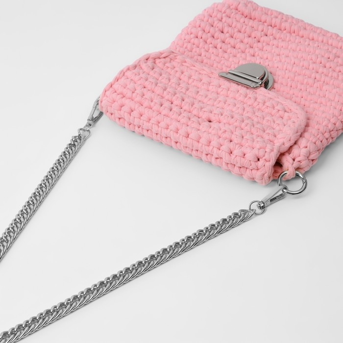 Цепочка для сумки, с карабинами, металлическая, плоская, плотное плетение, 15 × 10 мм, 60 см, цвет серебряный