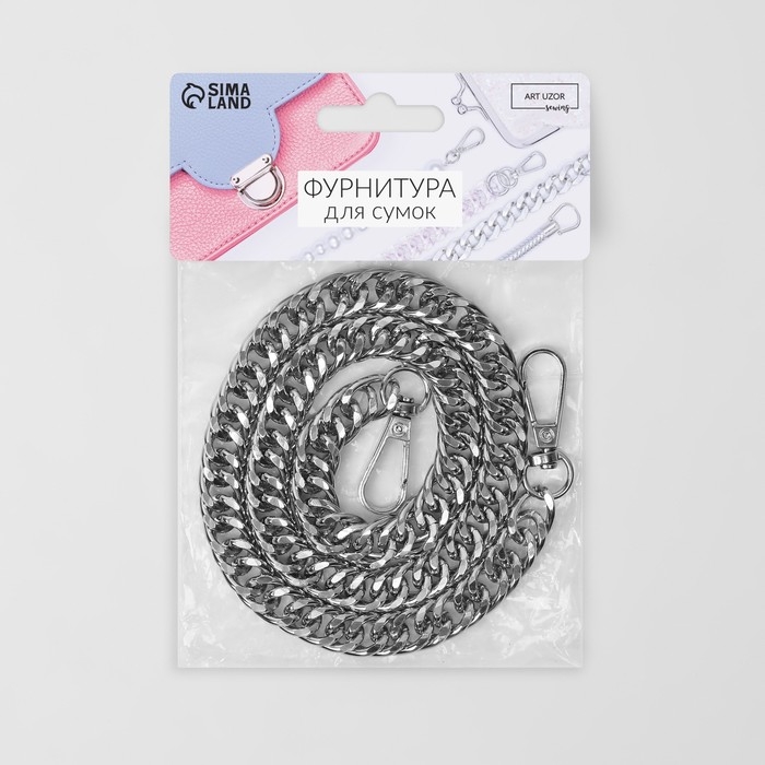 Цепочка для сумки, с карабинами, 14 × 18 мм, 60 см, цвет серебряный