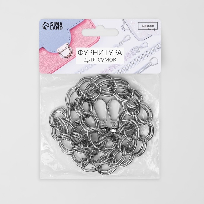 Цепочка для сумки, с карабинами, 14 × 10 мм, 60 см, цвет серебряный