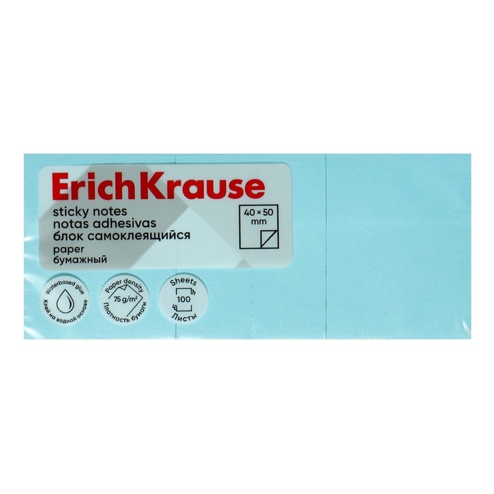 Блок самоклеящийся бумажный ErichKrause удобен для записи напоминаний и коротких сообщений. Клеевой слой на водной основе обеспечивает надежную фиксацию и возможность многократного переклеивания, не оставляя следов. Используется высококачественная бумага плотностью 75 г/м2. Размер листа - 50х40 мм. В упаковке 300 листов голубого цвета.