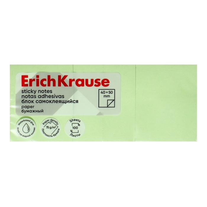 Блок с липким краем бумажный 40х50 мм, ErichKrause, 300 листов, зеленый