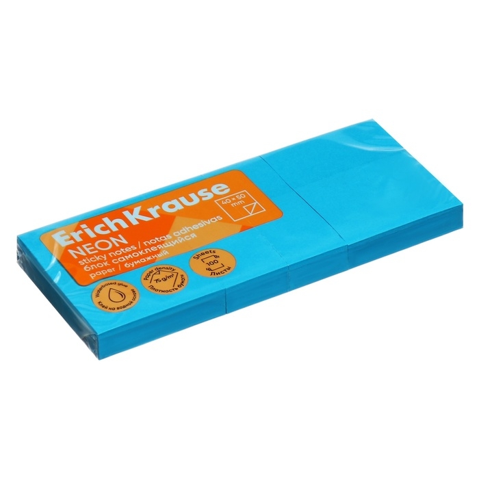 Блок самоклеящийся бумажный ErichKrause удобен для записи напоминаний и коротких сообщений. Клеевой слой на водной основе обеспечивает надежную фиксацию и возможность многократного переклеивания, не оставляя следов. Используется высококачественная бумага плотностью 75 г/м2. Размер листа - 50х40 мм. В упаковке 300 листов голубого цвета.