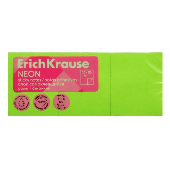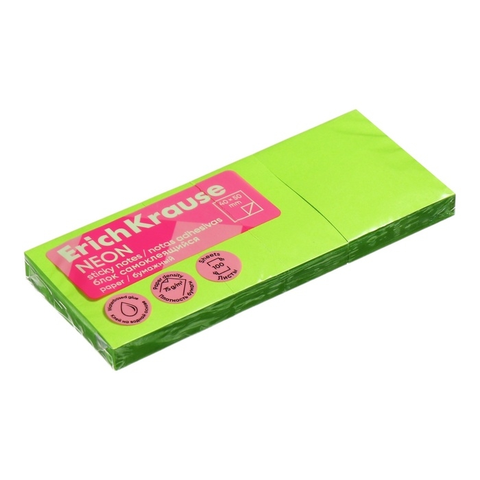 Блок с липким краем бумажный 40х50 мм, ErichKrause 300 листов, зеленый