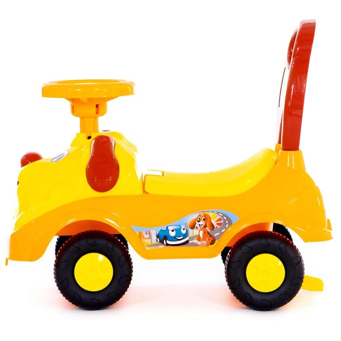 Яркая каталка подойдёт для игры на свежем воздухе или дома.