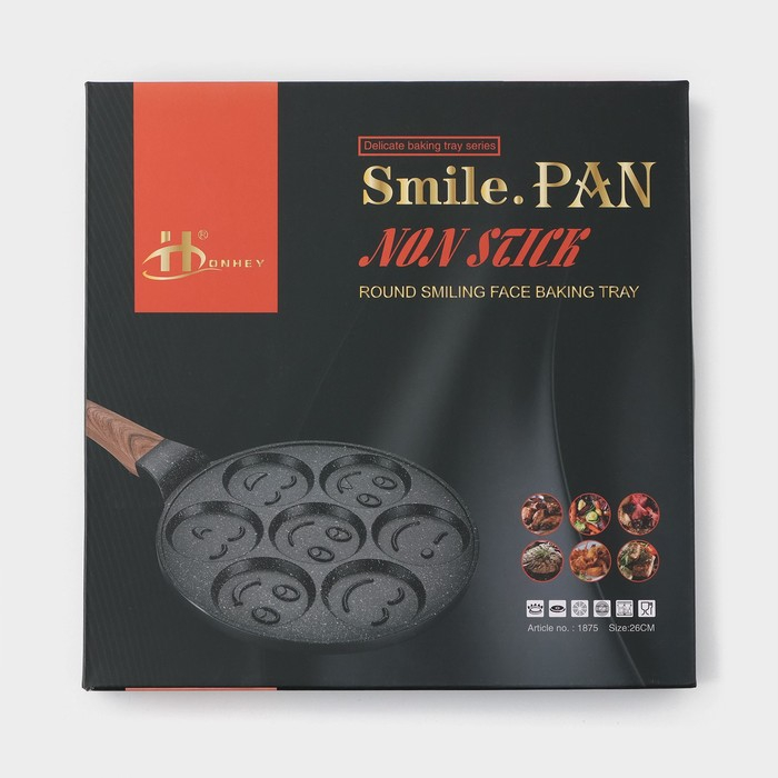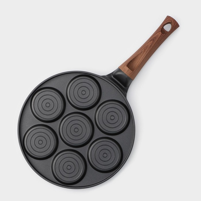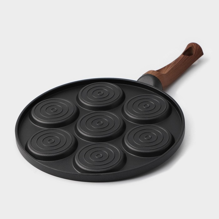 Сковорода-оладница литая Доляна «Смайлы», d=26 см, ручка soft-touch, цвет чёрный