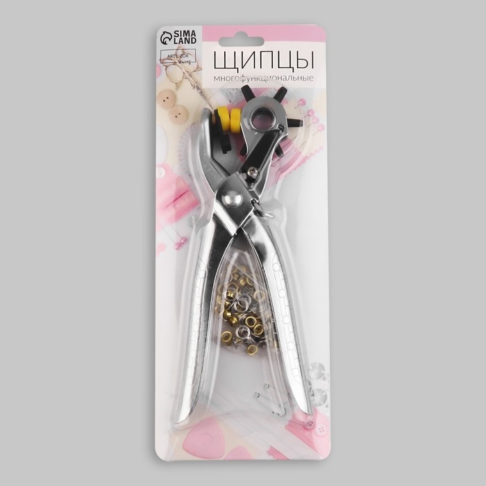 Щипцы-пробойник для установки блочек и кнопок, с блочками и кнопками, 21 × 9 см, цвет серебряный