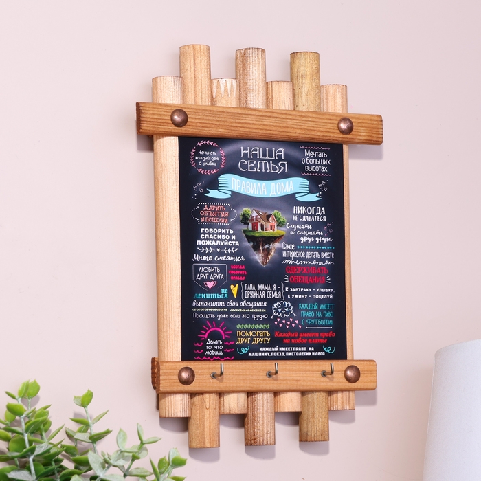 Ключница-панно "Правила дома", 24 х 16 см, ель