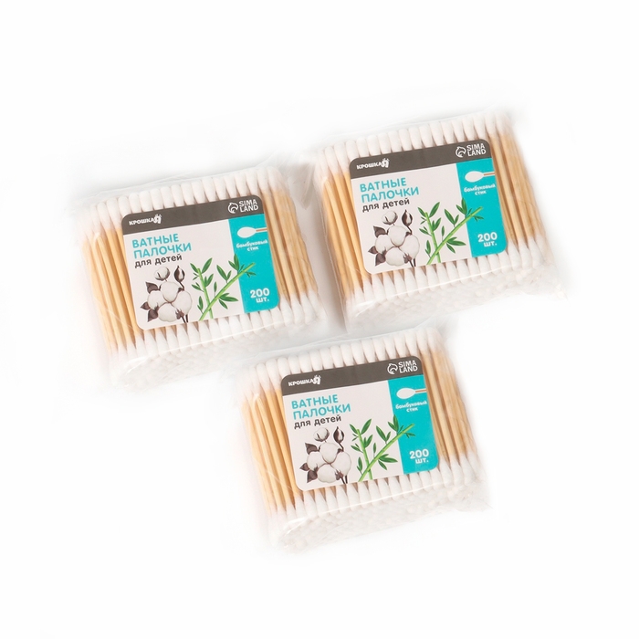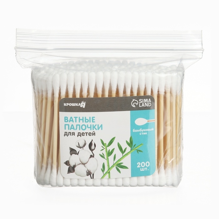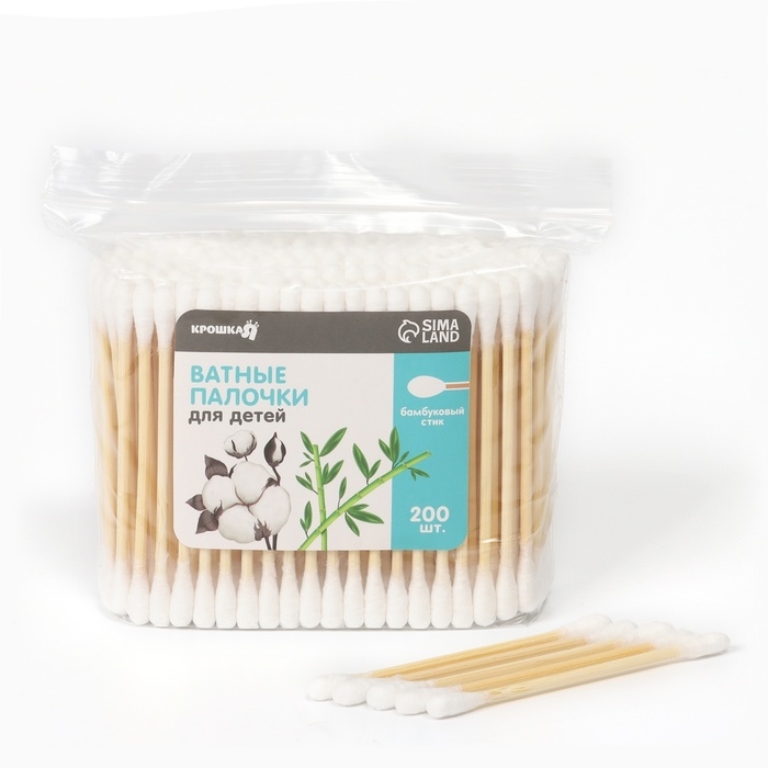 Ватные палочки для детей Крошка Я, коробка 200 шт., наконечник - классика, хлопок/бамбук