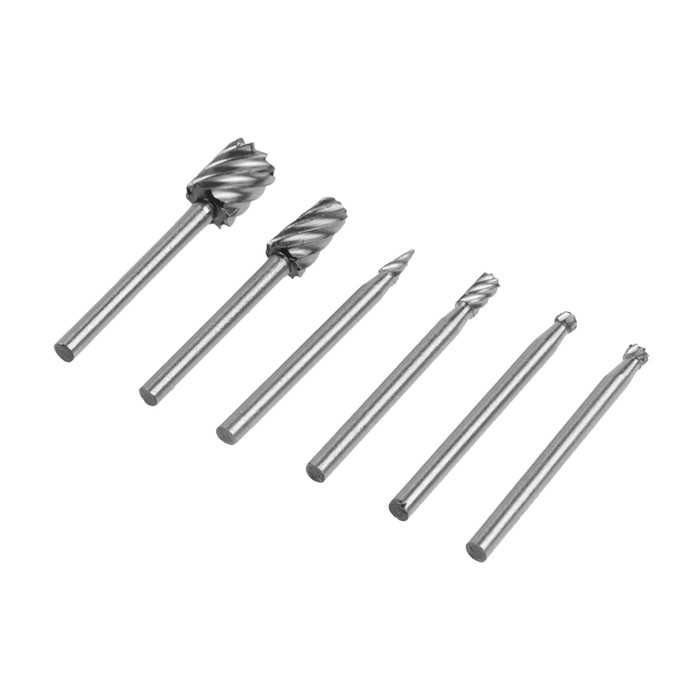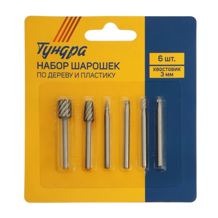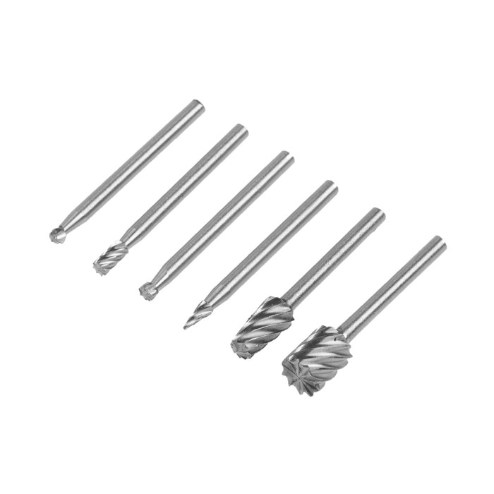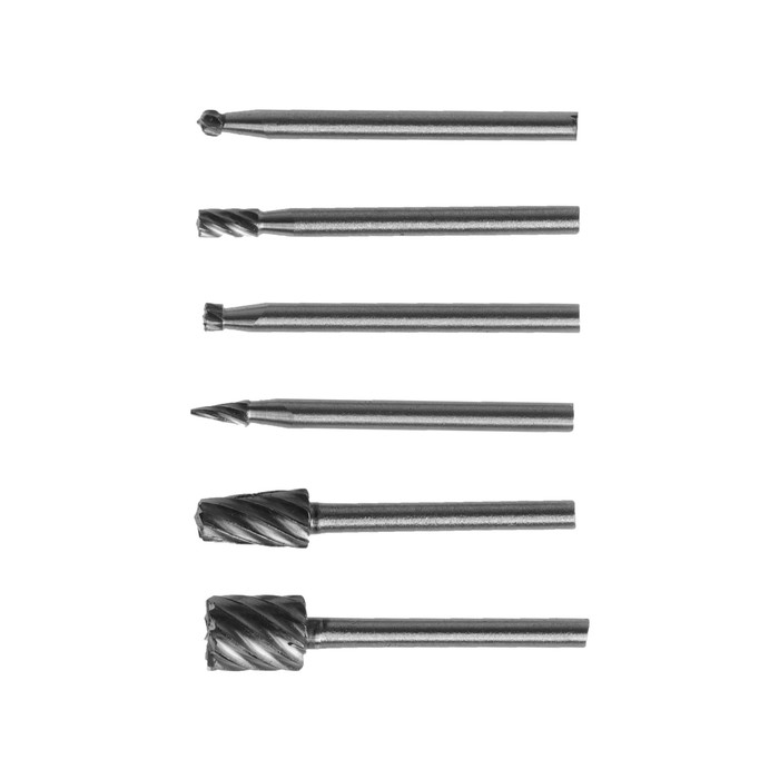 Набор шарошек по дереву и пластику ТУНДРА, диаметр хвостовика 3 мм, 6 шт.