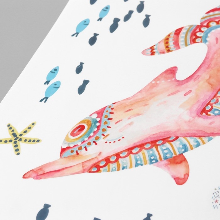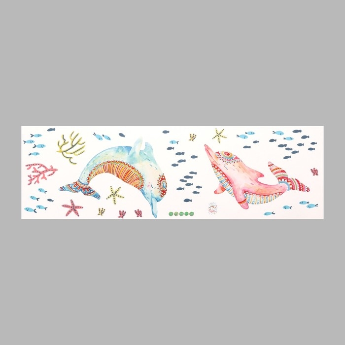 Наклейка пластик интерьерная цветная "Красочные морские дельфины" 30х90 см