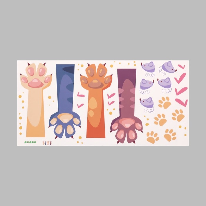Наклейка пластик интерьерная цветная "Кошачьи лапки" 30х60 см