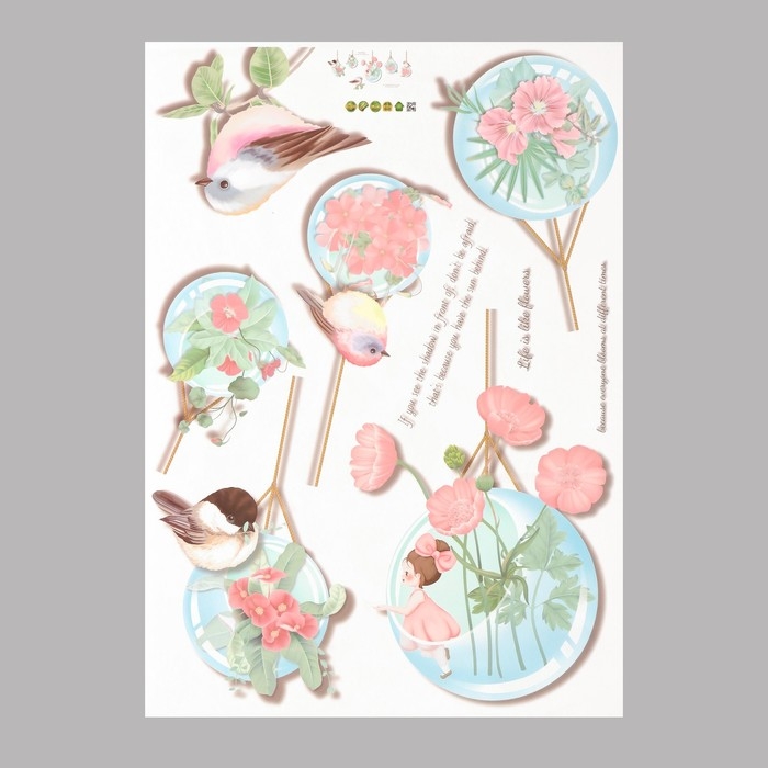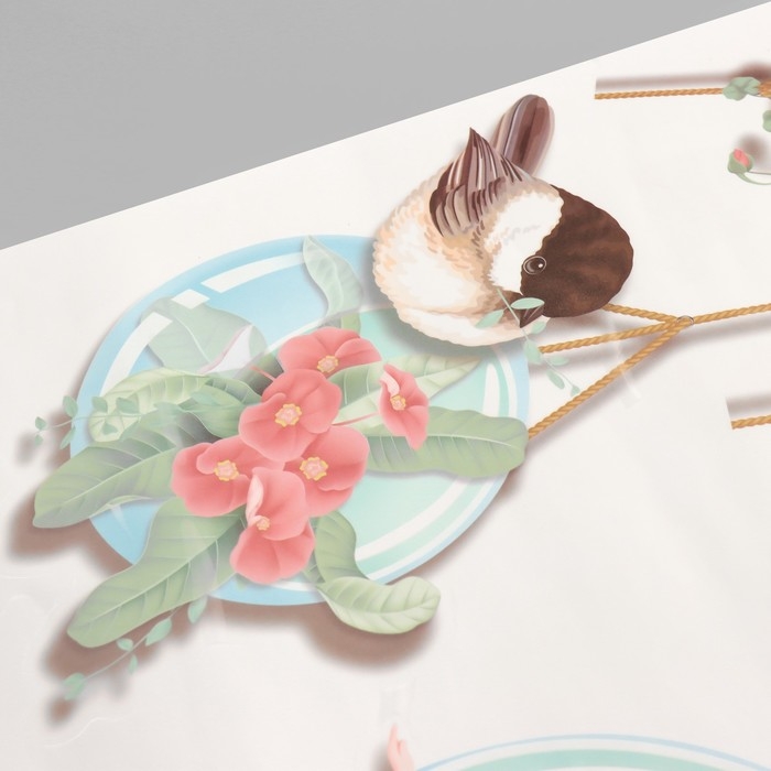 Наклейка пластик интерьерная цветная "Цветочные шарики с птицами" 50х70 см
