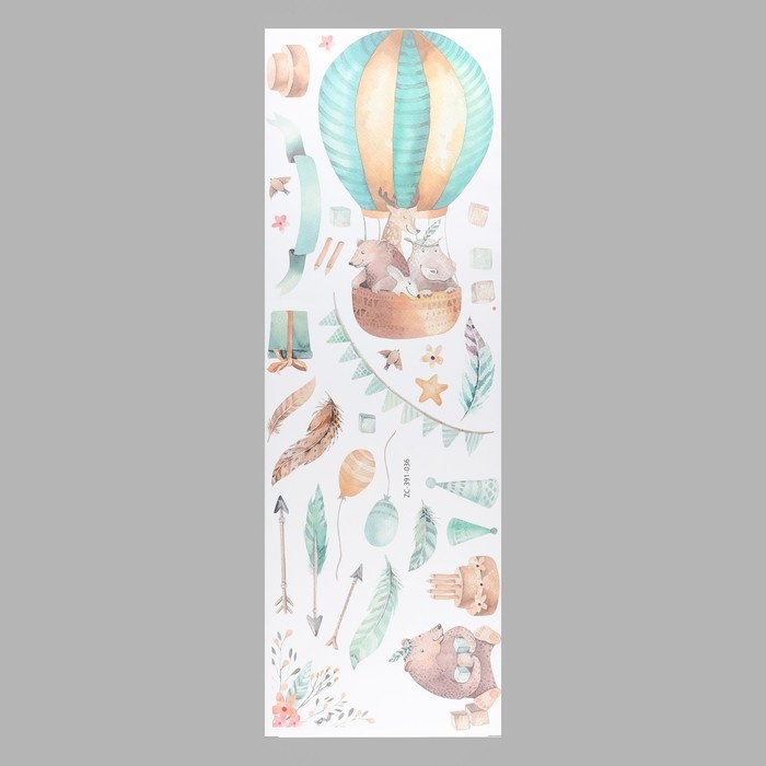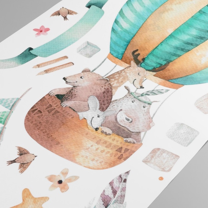 Наклейка пластик интерьерная цветная "Звери на воздушном шаре" 30х90 см