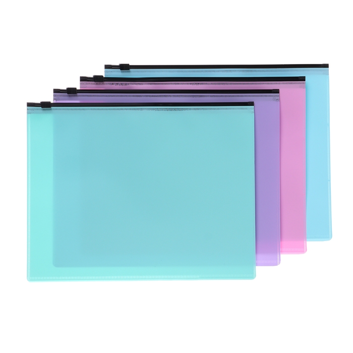 Набор папок-конвертов на ZIP-молнии A5, 150 мкм, Calligrata Pastel, полупрозрачные, 4 штуки, МИКС