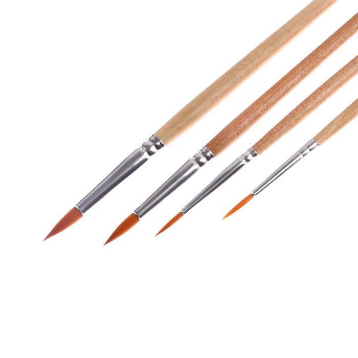 Набор кистей синтетика 4 штуки, №2 , круглые, блистер , деревянная ручка