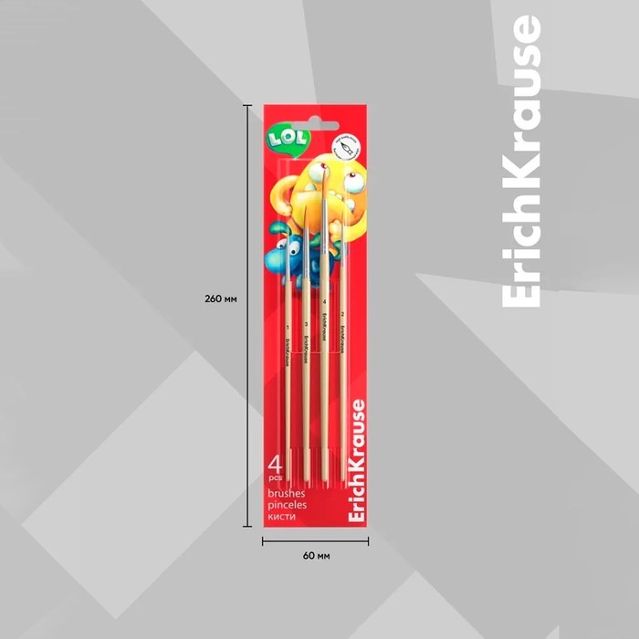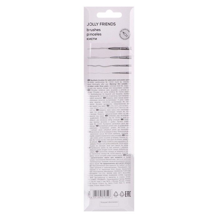 Набор кистей синтетика 4 штуки, ErichKrause "JollyFriends" для акварели и гуаши, блистер