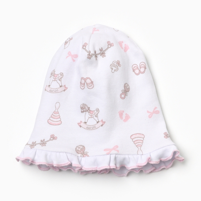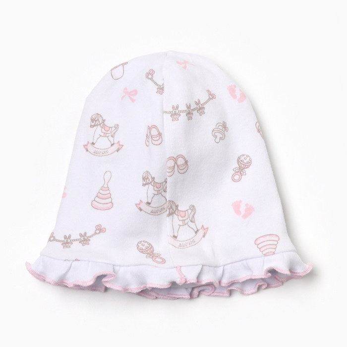 Шапочка детская, цвет белый-розовый, размер 38-40 (1-3 мес)