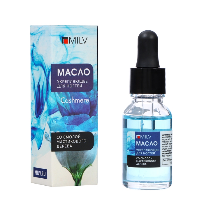 Масло для ногтей укрепляющее со смолой мастикового дерева MILV кашемир, 15 мл