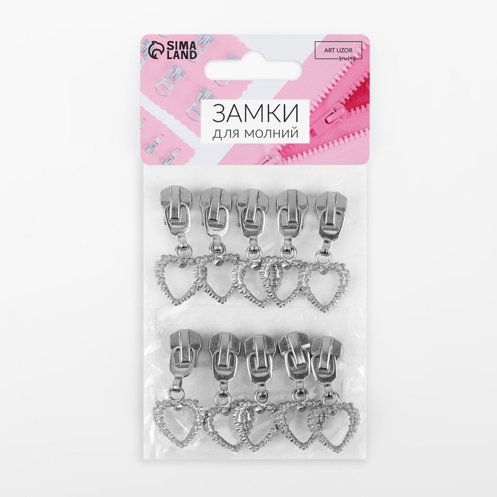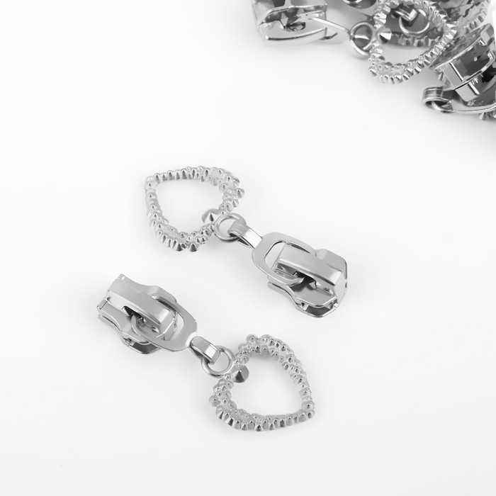 Бегунок автоматический для металлической молнии, №5, декоративный «Сердце», 10 шт, цвет никель