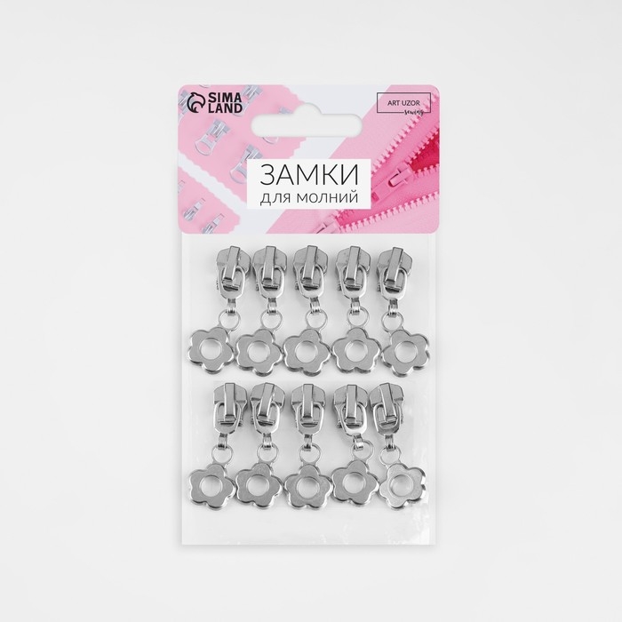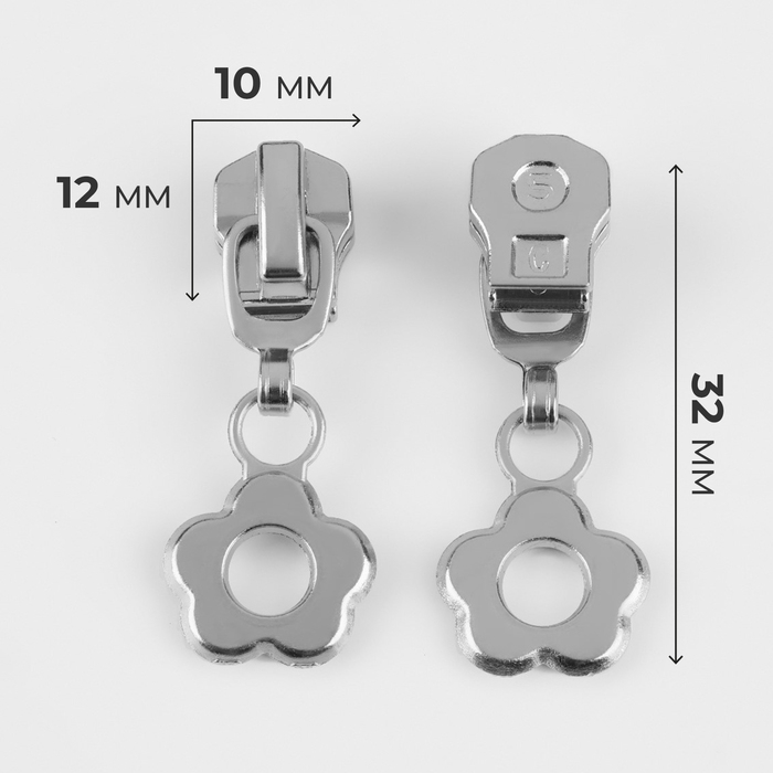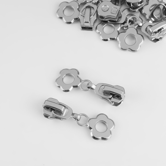 Бегунок автоматический для металлической молнии, №5, декоративный «Цветок», 10 шт, цвет никель