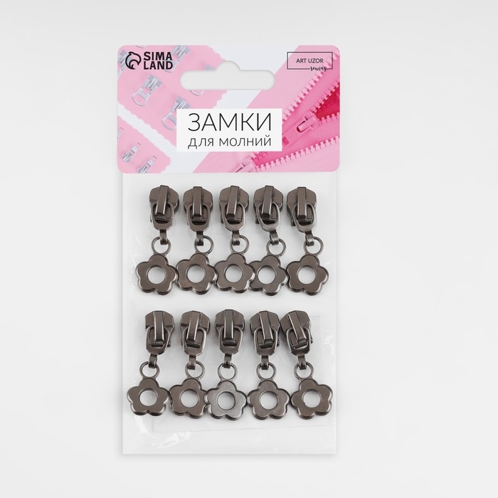 Бегунок автоматический для металлической молнии, №5, декоративный «Цветок», 10 шт, цвет чёрный никель