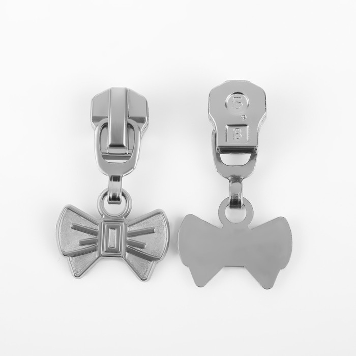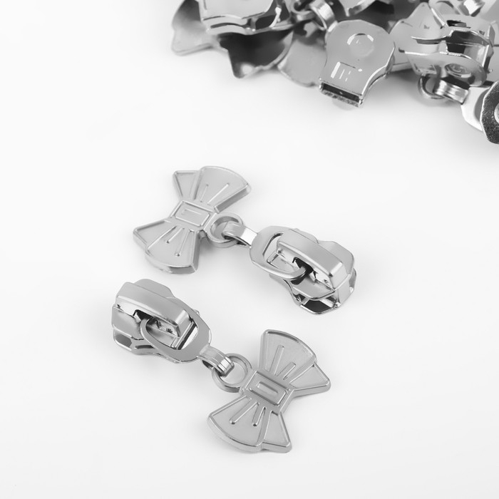Бегунок автоматический для металлической молнии, №5, декоративный «Бант»,, 10 шт, цвет никель