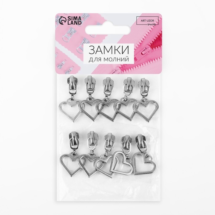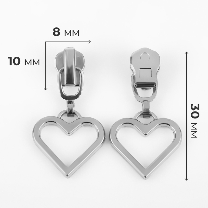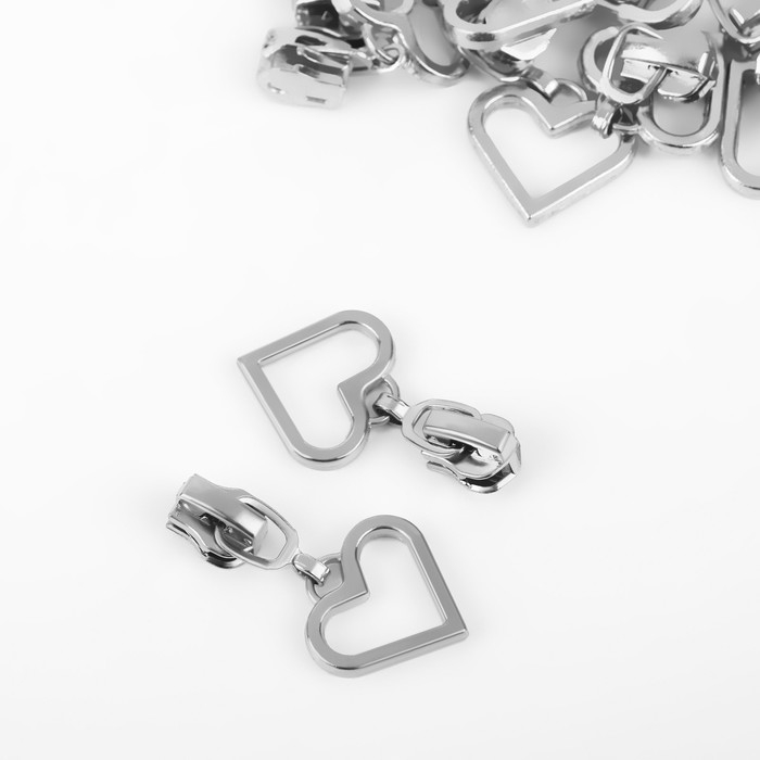 Бегунок автоматический для металлической молнии, №3, декоративный «Сердце», 10 шт, цвет никель