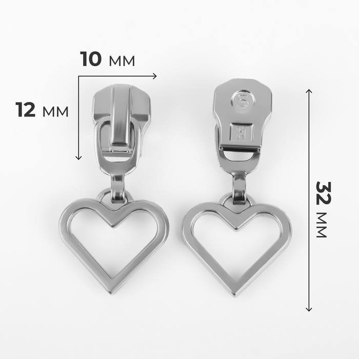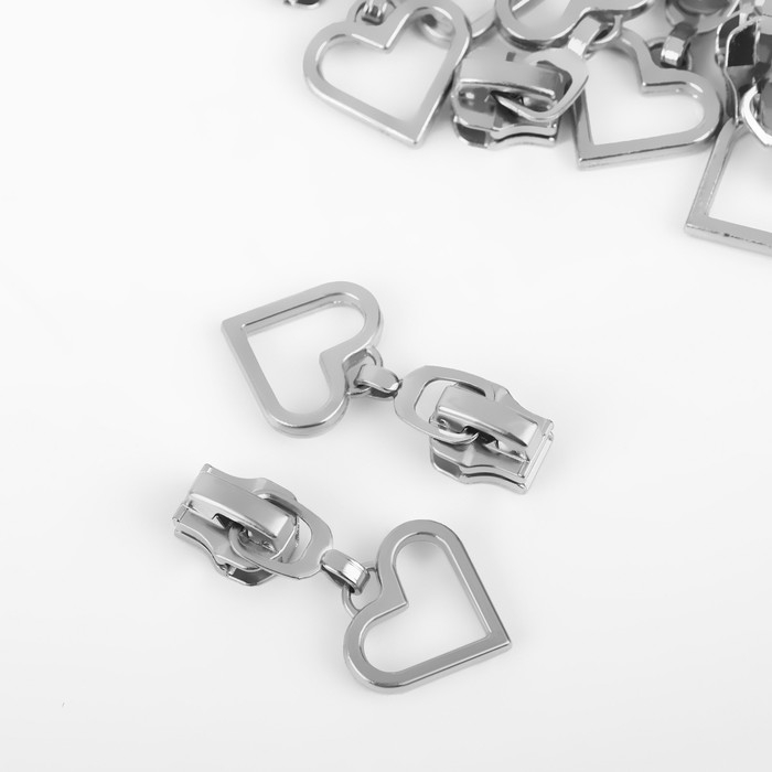 Бегунок автоматический для металлической молнии, №5, декоративный «Сердце», 10 шт, цвет никель